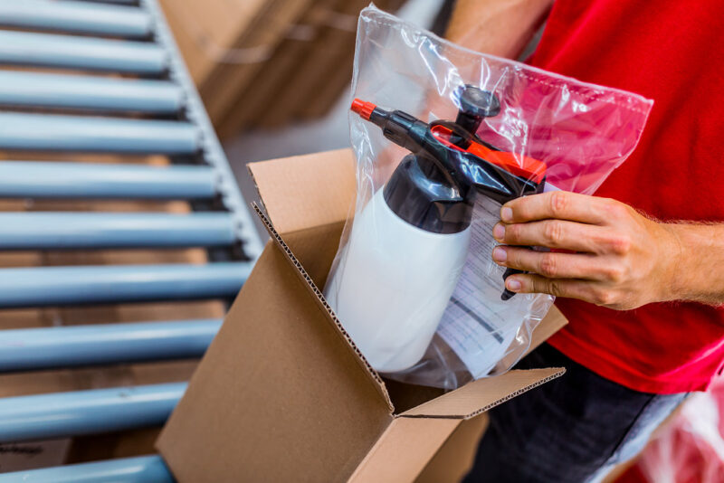 Individual product packaging and compilation of orders: PE pouches, single folding cartons, customer manuals, product tags.